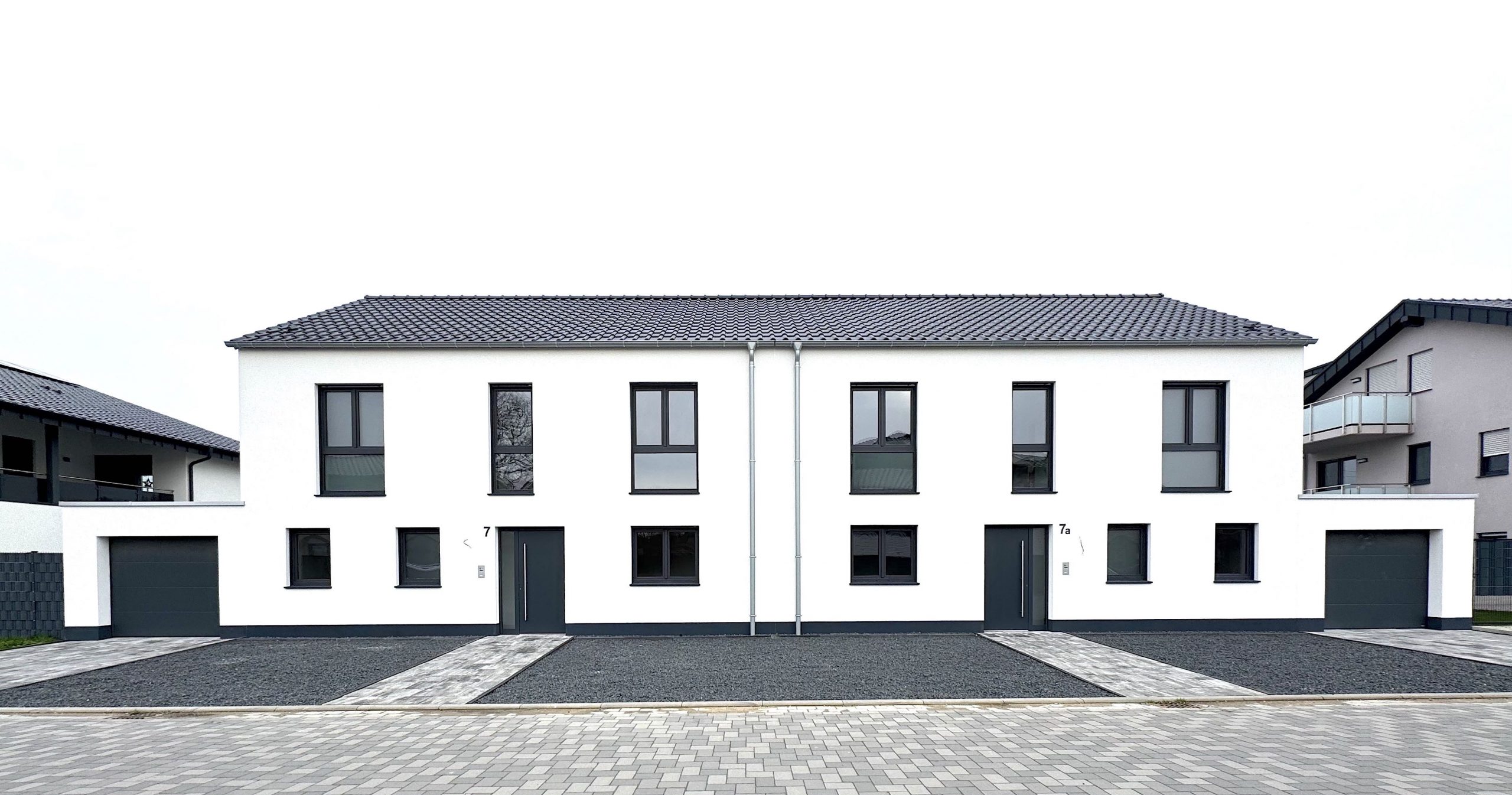 Die Doppelhaushälfte wird in gehobener Massivbauweise schlüsselfertig errichtet. Die Grundausstattung umfasst ein durchdachtes Energiekonzept mit Wärmedämmverbundsystem, Luftwärmepumpe und Fußbodenheizung sowie Kunststofffenster mit Dreifachverglasung und elektrischen Rollläden.